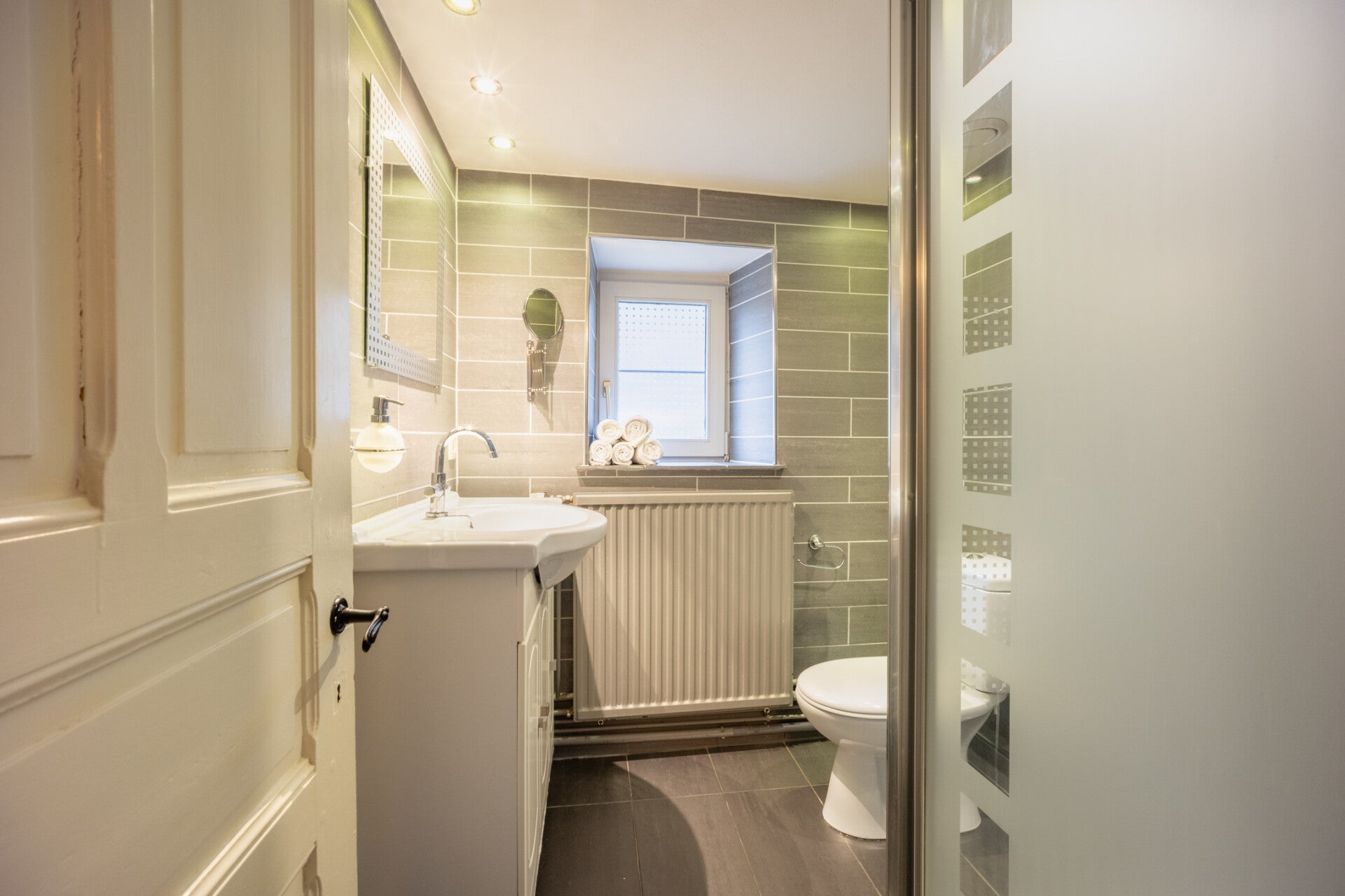 Gîte max 7 personnes - Durbuy. Il vous suffit d'ouvrir la porte et vous êtes sur les chemins de balade des Ardennes. Proche de nombreuses activités : Adventure Valley et Durbuy centre à 7km; Spa Francorchamps, Plopsa Coo, Palais des Congrès de Liège et Aéroport de Liège à 35km. Vous pouvez également pratiquer la pêche, l'escalade et la chasse. L'Ancien Tribunal date de 1880 et a garder tout son charme avec sa façade en pierres du pays. Et comme dans chaque tribunal, un cachot y est présent au sous-sol transformé en toilette ! Salon cosi, cuisine équipée, table à manger en chêne, A l'étage, vous avez 3 chambres, 2ième toilette avec une salle de douche, sèche-cheveux, wifi gratuit, draps et essuies sont fournis. Vous pouvez réserver un petit déjeuner ou une table d'hôte à l'Ancienne Boulangerie voisine chez les hôtes les vendredi, samedi et dimanche. Une petite dégustation peut également y être prise.
